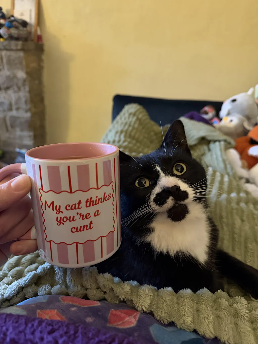 I absolutely love this mug I have two cats, one of them hates everything including me and his brother, but he approves of this mug.