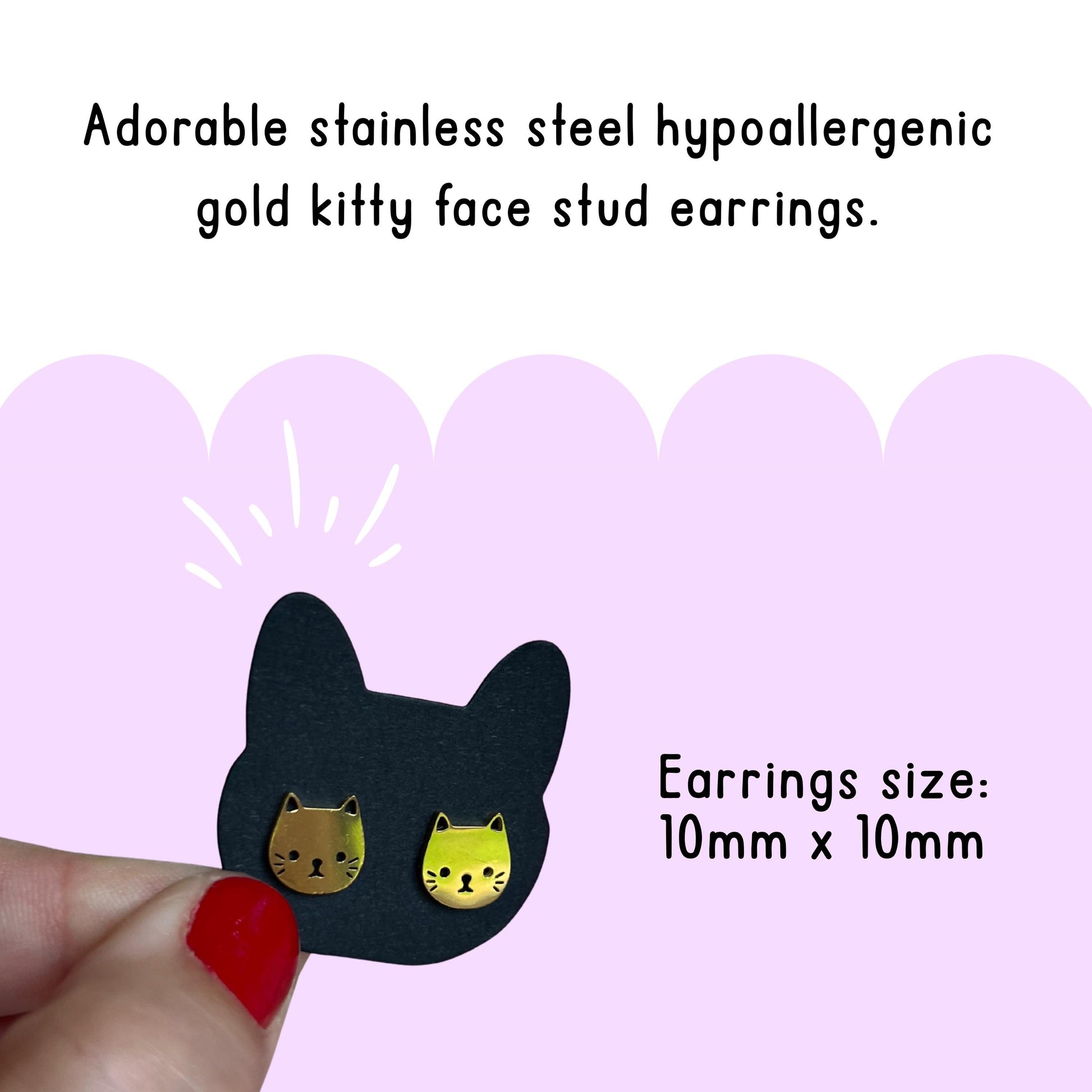- Gold cat earrings - stainless steel, hypoallergenic, 10mmx10mm studs.